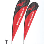 Guirlande de 3m de long composé de 10 drapeaux en polyester en polyester 100D imprimés en quadri numérique. Les 10 drapeaux sont répartis sur les 3 mètres de longueur de la guirlande. Possibilité d’alterner différents visuels sur les drapeaux. La drisse est dans une matière polyester. Tailles et formes sur-mesure possible : nous consulter.