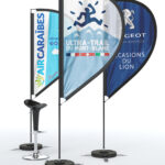 Mini oriflamme de table / flag de bureau personnalisé avec support rond en aluminium. Utilisation intérieure. Voile en matière 100% polyester 115g/m². Impression en sublimation numérique. Impression traversée visible de l’autre côté par transparence. Mât en métal. Sacoche de transport polyester taffetas offerte.Structure disponible sur stock dans notre entrepôt parisien, impression réalisée après validation de la commande