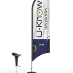 Beach flag en H ou rectangulaire de 4,8m de hauteur. Voile oriflamme en matière 100% polyester 115g/m². 2 techniques d’impressions possibles : numérique ou sérigraphique (MOQ de 50 pcs en sérigraphie). En impression recto seul, le visuel est visible sur l’autre côté par transparence. En impression numérique, il est possible d’imprimer en recto/verso ; une feuille occultante insérée entre les deux côtés permet d’avoir une meilleure lisbilité. Le fourreau noir de la voile est renforcé et fabriqué dans un polyester Oxford 300 D. Le mât est en fibre de carbone (très résistant). Les mâts se fixent sur tous les pieds de la même manière. L’axe de rotation présent sur les pieds pivote à 360°. Les voiles se tendent sur tous les mâts grâce à un élastique. Utilisation intérieure et extérieure. Garanti pour un vent inférieur à 70 km/h..Structure disponible sur stock dans notre entrepôt parisien, impression réalisée après validation de la commande