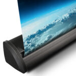 Avec son revêtement noir mat, son pourtour aluminium et sa courbe futuriste, le ROLLSPACE envoie un vent de fraicheur sur des rollups victimes de leur succ