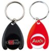 Porte clés plastique + jeton métallique. Prix incluant une impression du jeton de 1 à 4 couleurs sur le recto. Couleurs de plastique disponibles : rouge 485, blanc, jaune 137, gris 430, violet 261, rose 708, bleu clair 2905, bleu foncé 2736, marron 161. (Cliquez sur le lien détail article pour un devis) (Tarif HT/pce et hors marquage) « Sous réserve de stock » Sur devis uniquement