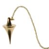 Descriptif du produit : Pendule « Energie » Pendule en métal doré Poids : 15 g. Pendule divinatoire en métal doré avec chaînette flexible de 16 cm et perle blanche. Livré avec une pochette noire en suédine et une notice en 7 langues dans une boite en plastique. Excellent accessoire de voyance et radiesthésie pour débutants et expérimentés. Ces utilisations sont multiples : obtenir des réponses à vos questions dans tous les domaines, recherche des personnes ou des objets, localisation des sources… Le pendule répond aux questions par « Oui » ou par « Non »; ce qui permet d’avoir une réponse nette. Hauteur : 40 mm ; Vendu avec notice et pochette suédine noire. Poids net : 15 g. ; Poids emballé : 100 g.