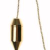 Descriptif du produit : Pendule « Plume » Pendule divinatoire en métal doré Poids : 34 g. Pendule en métal doré avec chainette flexible de 20 cm avec une perle blanche. Livré dans une boite plastique avec ses accessoires : une pochette et une notice en 7 langues. Excellent accessoire de voyance et radiesthésie pour débutants et expérimentés. Ces utilisations sont multiples : obtenir des réponses à vos questions dans tous les domaines, recherche des personnes ou des objets, localisation des sources… Le pendule répond aux questions par « Oui » ou par « Non »; ce qui permet d’avoir une réponse nette. Sa partie supérieure est dévissable et vous pouvez y introduire un « témoin », par exemple une mèche de cheveux, un liquide, un métal ou tout autre matériau en fonction de la recherche à effectuer. Hauteur : 48 mm Vendu avec notice et pochette suédine noire. Poids net : 34 g. ; Poids emballé : 100 g.